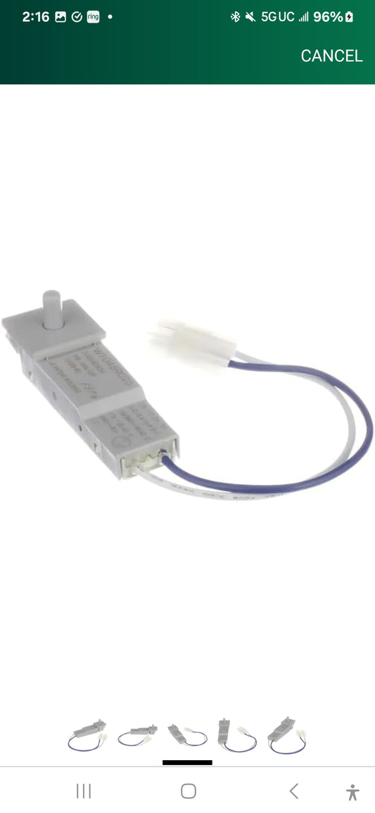 Door switch for Cabrio electric dryer. Part number -W10459026
